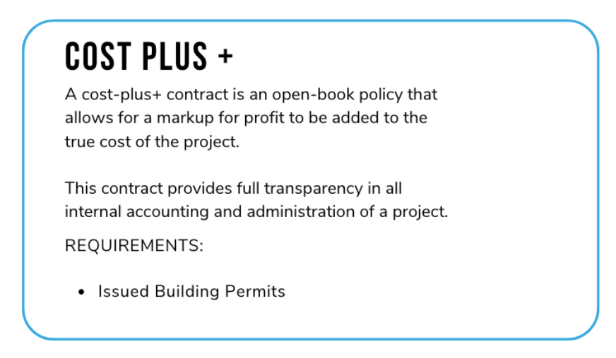 - Flexible Contracts: Choose from fixed-price or cost-plus contracts, including CCDC contracts, which top-tier construction lenders widely accept.